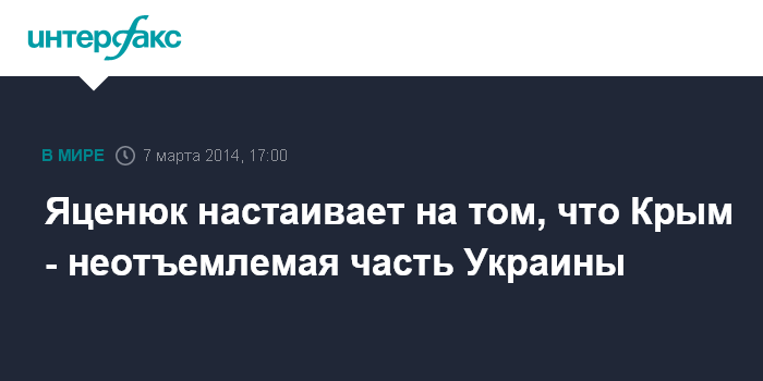"Никто не признает этот (крымский) референдум … Я хочу очень ясно сказать, что Крым был, есть и будет неотъемлемой частью Украины. Никаких уступок", - сказал Яценюк.