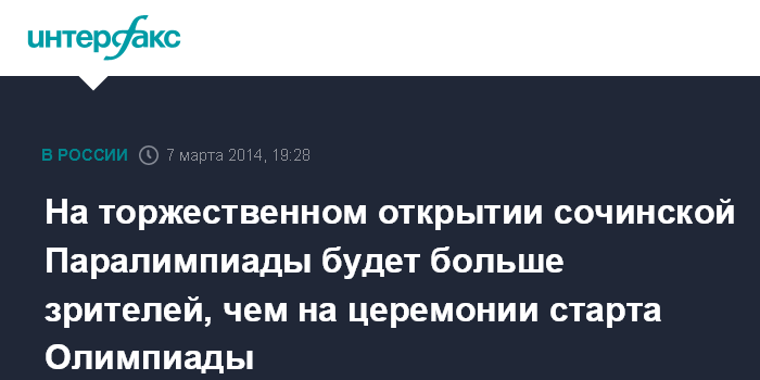 Москва. 7 марта. INTERFAX.RU - Президент России Владимир Путин заявил, что на церемонию открытия Паралимпиады продано уже больше билетов, чем на церемонию открытия Олимпиады.