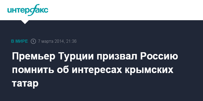 "Я обсудил с президентом России события в Крыму и сказал ему, что Россия должна защищать права крымских татар, так же как защищает права русского большинства и других меньшинств в Крыму", - приводит слова турецкого премьера Анатолийское информагентство.