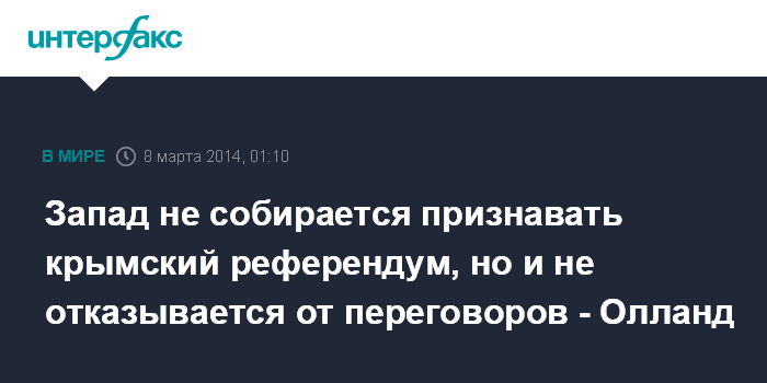 Запад не собирается признавать крымский референдум, но и не отказывается от переговоров - Олланд