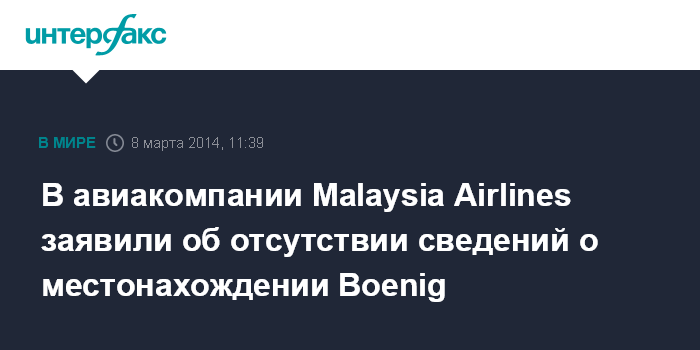 В авиакомпании Malaysia Airlines заявили об отсутствии сведений о местонахождении Boenig