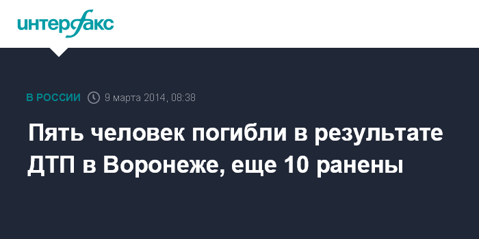«В воскресенье водитель автомобиля «Вольво» совершил наезд на группу людей на улице Богдана Хмельницкого в Воронеже. В результате ДТП пять человек погибли, еще 10 получили травмы», – сказал сотрудник пресс-центра.