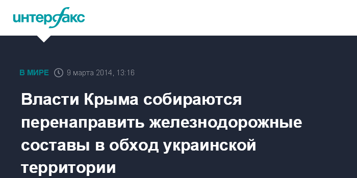 Москва. 9 марта. INTERFAX.RU - Железнодорожное сообщение между Россией и Крымом может быть организовано через Краснодарский край, в обход Украины, заявил "Интерфаксу" вице-премьер автономной республики Крым Рустам Темиргалиев. "Мы рассчитываем на перезагрузку железнодорожных потоков через паром на Кубань. Мы ожидаем, что будет быстрыми темпами строиться мост Крым-Кубань (через Керченский пролив - ИФ), для того, чтобы наши крымчане не почувствовали дискомфорта при поездках из Крыма в Россию", - сказал он.