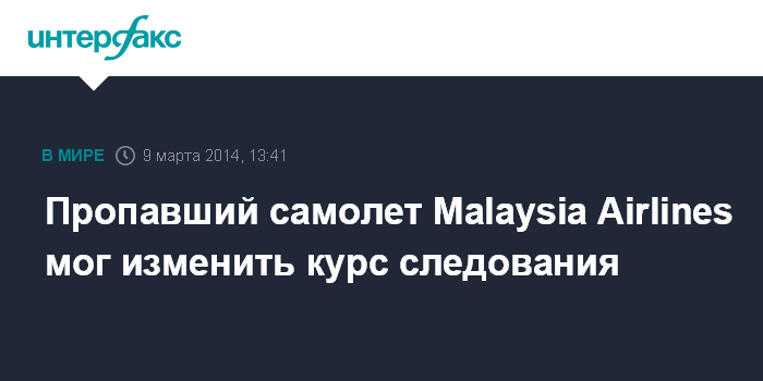 Пропавший самолет Malaysia Airlines мог изменить курс следования