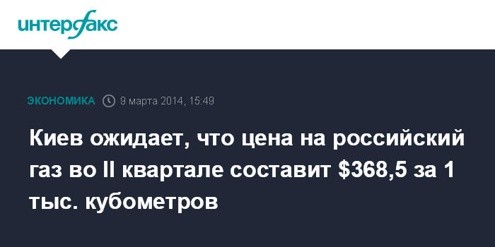 Киев ожидает, что цена на российский газ во II квартале составит $368,5 за 1 тыс. кубометров