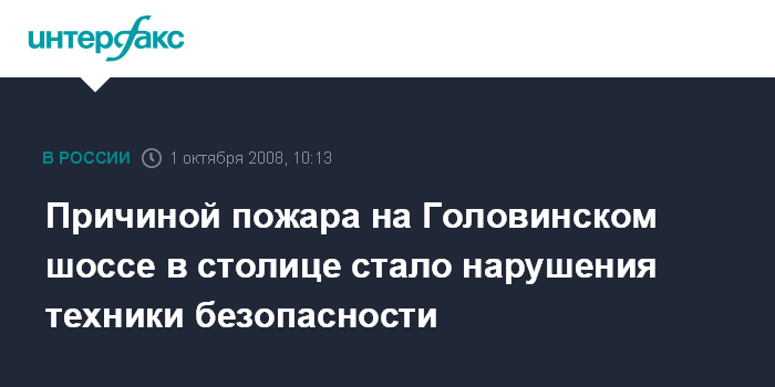 Причиной пожара на Головинском шоссе в столице стало нарушения техники безопасности