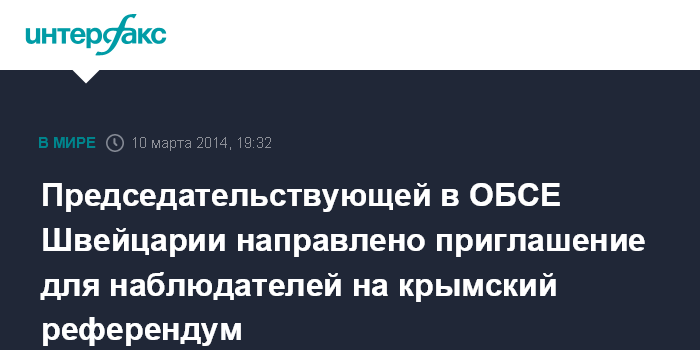 Председательствующей в ОБСЕ Швейцарии направлено приглашение для наблюдателей на крымский референдум