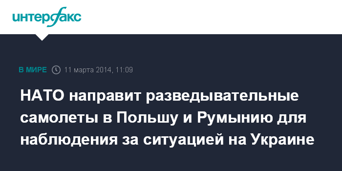 НАТО направит разведывательные самолеты в Польшу и Румынию для наблюдения за ситуацией на Украине