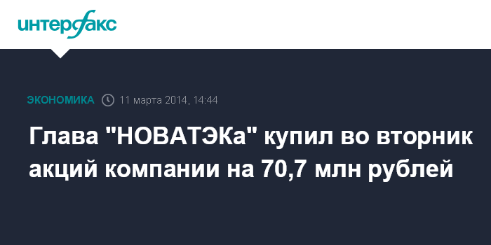 Глава "НОВАТЭКа" купил во вторник акций компании на 70,7 млн рублей