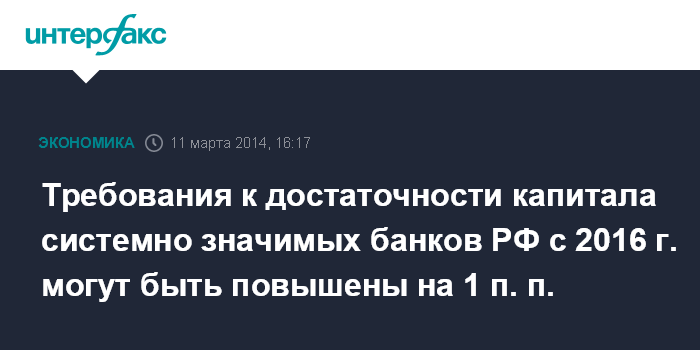 Требования к достаточности капитала системно значимых банков РФ с 2016 г. могут быть повышены на 1 п. п.