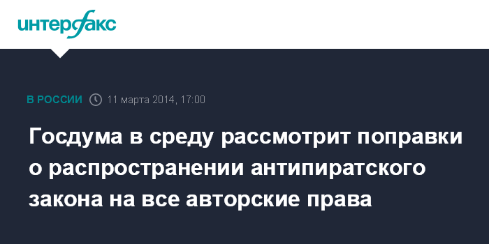 Кроме того, поправки корректируют нормы антипиратского закона о блокировке нелегального контента, ответственности операторов связи перед правообладателями и пользователями.