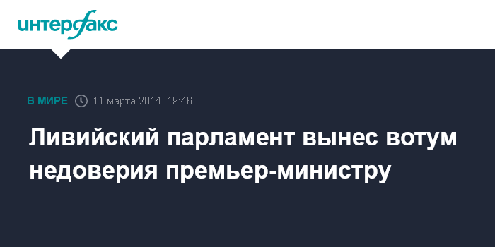 Дубай. 11 марта. INTERFAX.RU - Всеобщий национальный конгресс Ливии вынес вотум недоверия премьер-министру Али Зейдану, сообщает во вторник телеканал "Аль-Арабийя".