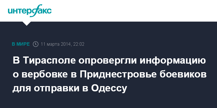 В Тирасполе опровергли информацию о вербовке в Приднестровье боевиков для отправки в Одессу
