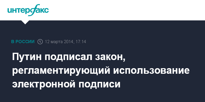 Москва. 12 марта. INTERFAX.RU - Президент России Владимир Путин определил сферы деятельности, в которых будут использоваться три вида электронной подписи: простая, усиленная квалифицированная, усиленная неквалифицированная.