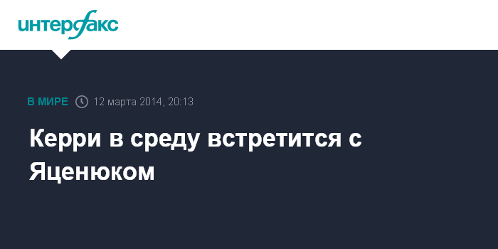 Москва. 12 марта. INTERFAX.RU - Госсекретарь США Джон Керри сообщил, что позже в среду проведет встречу с премьер-министром Украины Арсением Яценюком.
