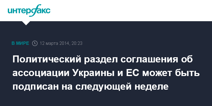 Политический раздел соглашения об ассоциации Украины и ЕС может быть подписан на следующей неделе