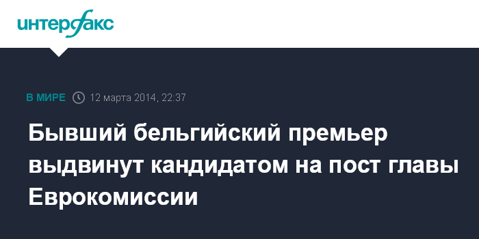 Бывший бельгийский премьер выдвинут кандидатом на пост главы Еврокомиссии