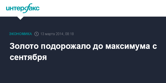 Москва. 13 марта. INTERFAX.RU - Цена на золото, которое традиционно считается у инвесторов "безопасной гаванью", достигла в четверг рекордного за последние полгода уровня на фоне роста напряженности вокруг Украины, сообщает агентство Bloomberg.