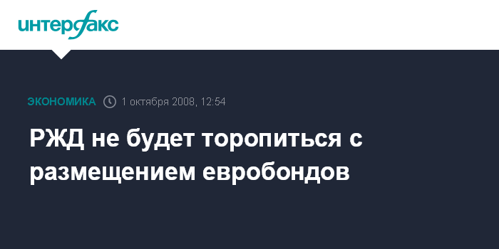 Москва. 1 октября. INTERFAX.RU - ОАО "Российские железные дороги" не будет торопиться с размещением еврооблигаций, сообщил глава компании Владимир Якунин на пресс-конференции в "Интерфаксе" в среду.