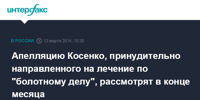 Апелляцию Косенко, принудительно направленного на лечение по "болотному делу", рассмотрят в конце месяца