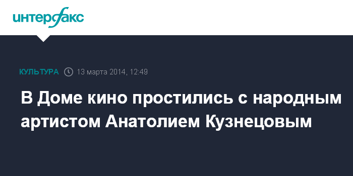 Москва. 13 марта. INTERFAX.RU - Прощание с народным артистом РФ Анатолием Кузнецовым прошло в четверг в Москве, в Доме Кино.