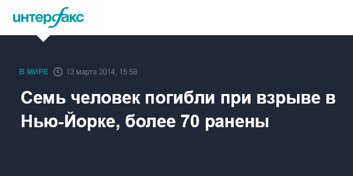 Москва. 13 марта. INTERFAX.RU - Число погибших в результате взрыва, вызванного утечкой газа в Нью-Йорке, увеличилось до семи человек, сообщает в четверг американский телеканал Эн-Би-Си.