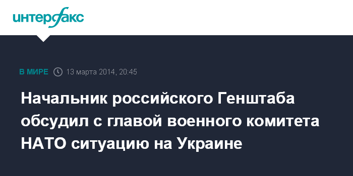Москва. 13 марта. INTERFAX.RU - Военачальники России и НАТО обсудили в четверг ситуацию на Украине, сообщает управление пресс-службы и информации Минобороны РФ.