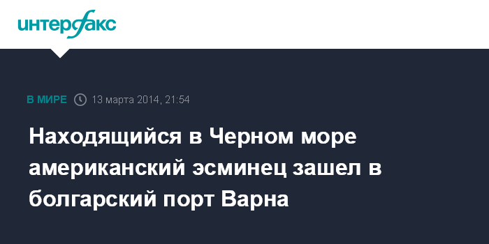 Вашингтон. 13 марта. INTERFAX.RU - Американский ракетный эсминец "Тракстан", зашедший в акваторию Черного моря для участия в совместных с ВМФ Румынии и Болгарии учениях, в четверг прибыл с визитом в болгарский порт Варна, сообщила Информационная служба ВМС США.