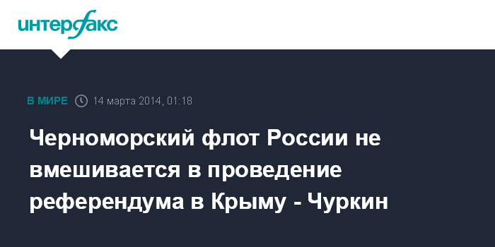 Черноморский флот России не вмешивается в проведение референдума в Крыму - Чуркин