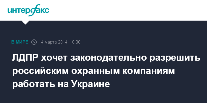 По словам Лугового, российские охранники - это, как правило, бывшие офицеры, бывшие солдаты, сержанты Минобороны, полиции и ФСБ. Он сообщил, что фракция ЛДПР в ближайшие дни подготовит специальные поправки в законодательство об охранной деятельности, которые позволят российским охранным компаниям работать за рубежом. По его словам, обращение российских охранников к президенту особенно важно в связи с тем, что на прошлой неделе "группа американских и британских охранных компаний высадилась на территории Украины - более 300 человек - и взяла под охрану ключевые административные здания так называемой новой власти".