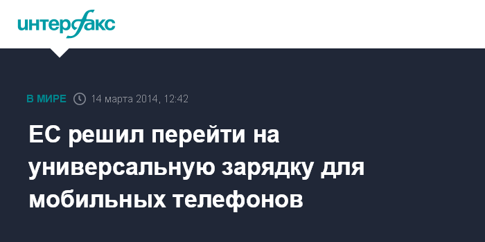 Москва. 14 марта. INTERFAX.RU - Евросоюз принял решение обязать производителей мобильных телефонов, реализующих продукцию в странах ЕС, в течение трех лет добиться перехода на универсальные зарядные устройства, сообщает в пятницу французская газета Le Monde.