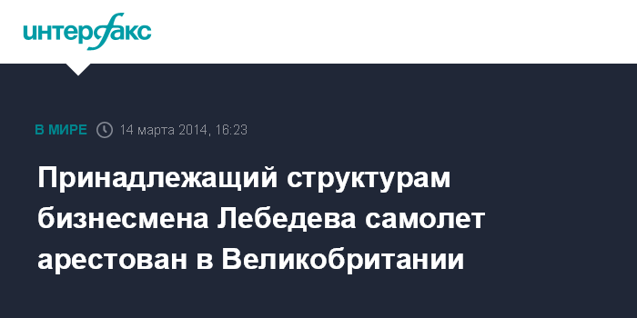 Принадлежащий структурам бизнесмена Лебедева самолет арестован в Великобритании
