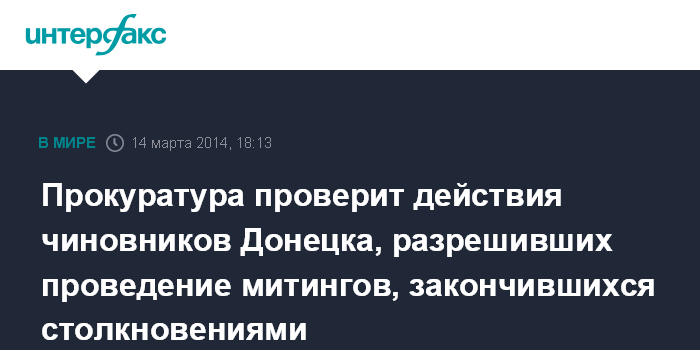 Прокуратура проверит действия чиновников Донецка, разрешивших проведение митингов, закончившихся столкновениями