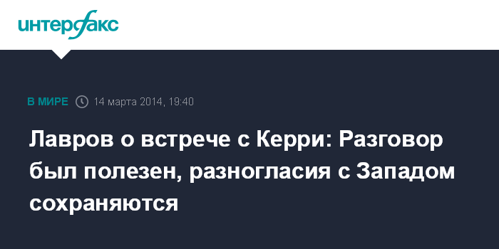 Лавров о встрече с Керри: Разговор был полезен, разногласия с Западом сохраняются
