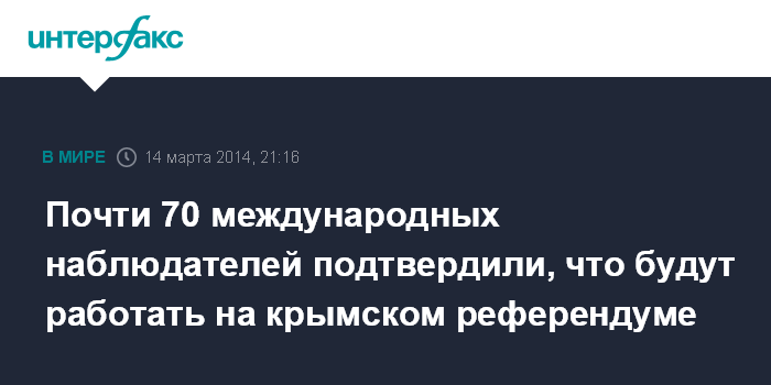 Почти 70 международных наблюдателей подтвердили, что будут работать на крымском референдуме