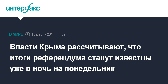 Власти Крыма рассчитывают, что итоги референдума станут известны уже в ночь на понедельник