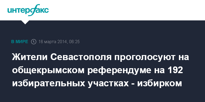 Жители Севастополя проголосуют на общекрымском референдуме на 192 избирательных участках - избирком