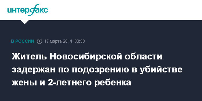 Житель Новосибирской области задержан по подозрению в убийстве жены и 2-летнего ребенка