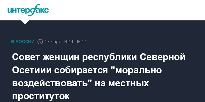 Совет женщин республики Северной Осетиии собирается "морально воздействовать" на местных проституток