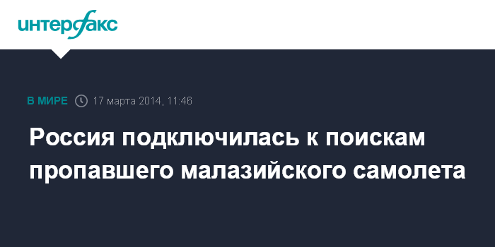 Москва. 17 марта. INTERFAX.RU - Россия вошла в список стран, вовлеченных в поиски пропавшего "Боинга-777" малазийской авиакомпании Malaysia Airlines, свидетельствуют данные заявления министерства транспорта Малайзии, опубликованного на странице премьера страны Наджиба Разака в "Фейсбуке".