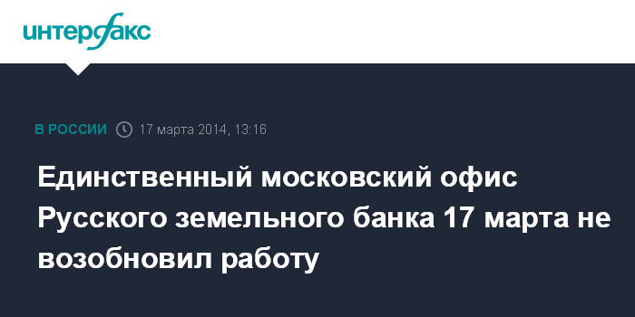 Единственный московский офис Русского земельного банка 17 марта не возобновил работу