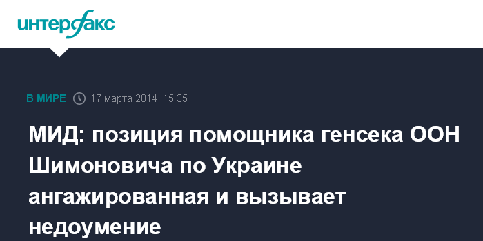 Москва. 17 марта. INTERFAX.RU - В МИД недоумевают в связи с высказываниями помощника генсека ООН по правам человека Ивана Шимоновича по ситуации на Украине и обвиняют его в использовании двойных стандартов.