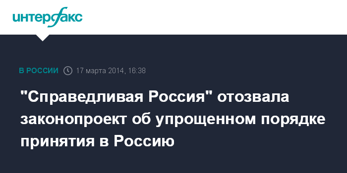 "Справедливая Россия" отозвала законопроект об упрощенном порядке принятия в Россию