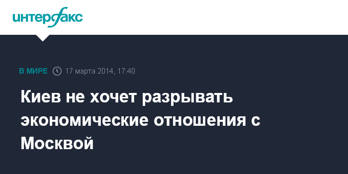 "Мы считаем нецелесообразным пока разрывать экономические отношения с Российской Федерацией. Это связано с тем, что официально Россия де-юре нам не объявила войну, но фактически ее экспансия на территории Крыма - это война", - сказал он на пресс-конференции в понедельник в Киеве.