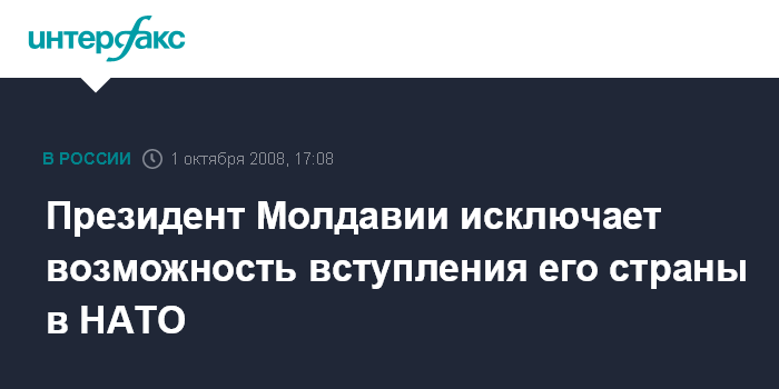 "Республика Молдова по конституции имеет статус постоянного нейтралитета, который, в частности, предусматривает невступление ни в какие военные организации. Вопрос о замене статуса нейтралитета не стоит ни внутри Молдовы, ни в отношении республики с европейскими структурами и НАТО", - сказал Воронин в эфире радиостанции "Эхо Москвы".