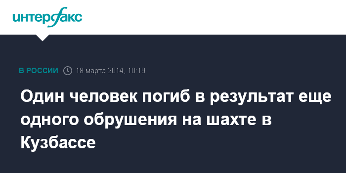 Москва. 18 марта. INTERFAX.RU - Стало известно еще об одном случае обрушения на одной из шахт Кузбасса, в этот раз погиб один горняк.