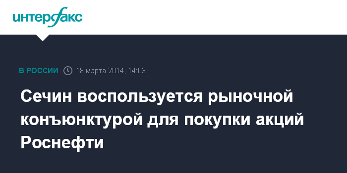 Москва. 18 марта. INTERFAX.RU - Президент НК "Роснефть" Игорь Сечин планирует воспользоваться рыночной конъюнктурой для покупки акций компании.