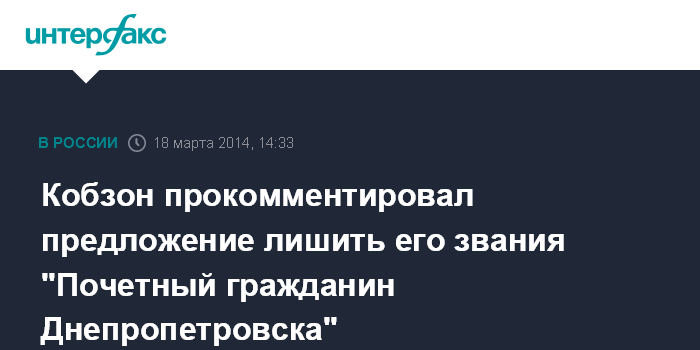 Москва. 18 марта. INTERFAX.RU - Народный артист Украины и СССР, депутат Государственной думы Иосиф Кобзон заявил, что огорчен инициативой жителей Днепропетровска о лишении его звания "Почетный гражданин", но не хотел бы его носить, если к власти в городе придут "националисты и радикалы".