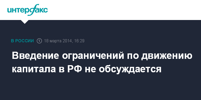 Москва. 18 марта. INTERFAX.RU - Введение ограничений на трансграничное движение капитала в России в настоящее время не обсуждается, сообщил замминистра финансов РФ Алексей Моисеев журналистам во вторник.