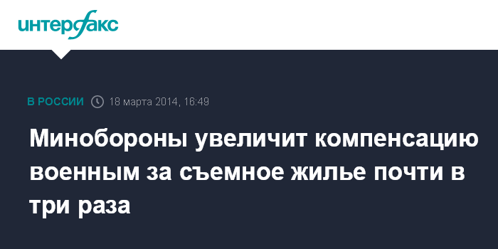 Москва. 18 марта. INTERFAX.RU - Минобороны РФ планирует почти втрое увеличить компенсацию военным за съемное жилье, сообщил глава департамента жилищного обеспечения (ДЖО) Минобороны РФ Сергей Пирогов.